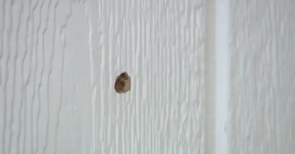 Esta imagem da cena do crime mostra um buraco de bala na casa de um vizinho. Uma bala atingiu a casa de Lily Silva-Lopez e acabou presa na casa ao lado (captura de tela via Denver7).