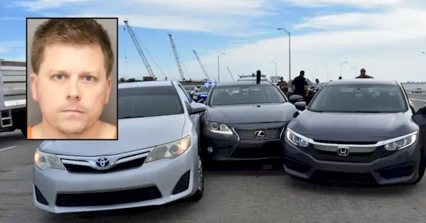O incidente subjacente ocorreu em 26 de setembro na ponte W. Howard Frankland de ligação fixa de 7,8 quilômetros de extensão - parte da Florida Interstate 275 que atravessa Old Tampa Bay, conectando São Petersburgo a Tampa - durante os últimos minutos da hora do rush matinal, quando um carro parou na rodovia pelo que os policiais estaduais chamaram de 'motivo desconhecido'.
